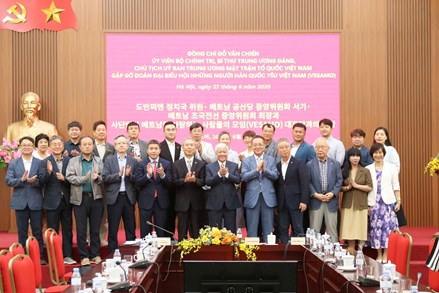 | Chủ tịch Đỗ Văn Chiến chụp ảnh lưu niệm với Đoàn đại biểu Hội những người Hàn Quốc yêu Việt Nam (VESAMO) |