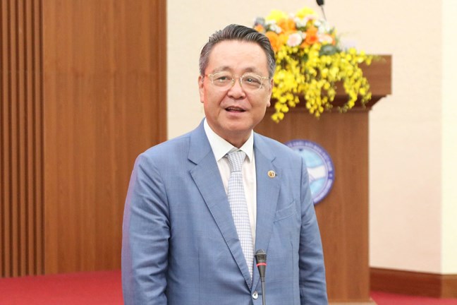 | Ông Chang Ho Ick, Phó Chủ tịch Tập đoàn Dongwon, Phó Chủ tịch Phòng Thương mại và Công nghiệp thành phố Busan, Chủ tịch VESAMO phát biểu |