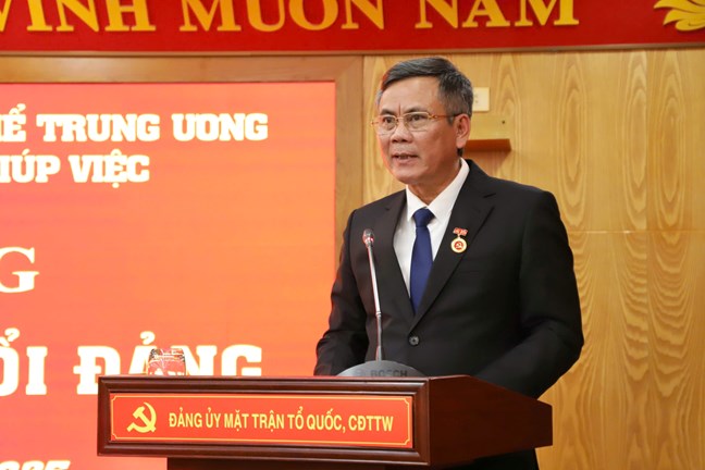 Phát biểu tại buổi trao, đồng chí Đỗ Văn Chiến nhấn mạnh, huy hiệu Đảng là phần thưởng cao quý, là sự ghi nhận của Đảng đối với quá trình phấn đấu, rèn luyện và cống hiến của mỗi đảng viên. Trong không khí hào hùng của những ngày mùa thu lịch sử, hướng tới kỷ niệm 80 năm Cách mạng Tháng tám và Quốc khánh 2/9, Ban Thường vụ Đảng ủy MTTQ, các đoàn thể Trung ương tổ chức Lễ trao Huy hiệu 30 năm tuổi Đảng cho đồng chí Trần Thắng, Phó Bí thư Đảng ủy thể hiện sự trân trọng, ghi nhận của Đảng đối với những đóng góp, cống hiến bền bỉ, liên tục của đồng chí trong suốt 30 năm qua.