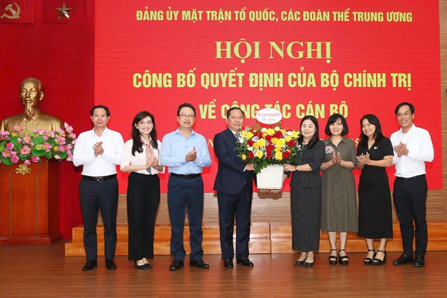 Tại Hội nghị, đồng chí Đỗ Trọng Hưng, Ủy viên Trung ương Đảng, Phó Trưởng ban Tổ chức Trung ương đã công bố Quyết định của Bộ Chính trị điều động, phân công, chỉ định tham gia Ban Chấp hành, Ban Thường vụ Đảng ủy và giữ chức Phó Bí thư Đảng ủy MTTQ, các đoàn thể Trung ương nhiệm kỳ 2020-2025.