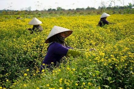 | Nông dân huyện Vĩnh Bảo (TP Hải Phòng) làm giàu trên những cánh đồng hoa cúc chi. |