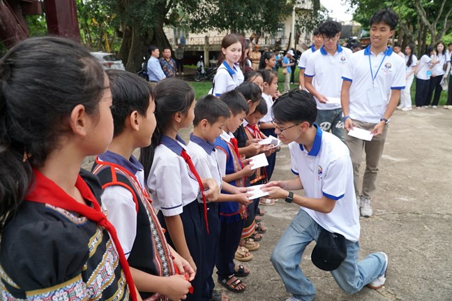 | Trong hành trình, các kiều bào trẻ không quên gửi tặng những phần quà ý nghĩa cho trẻ em khó khăn |