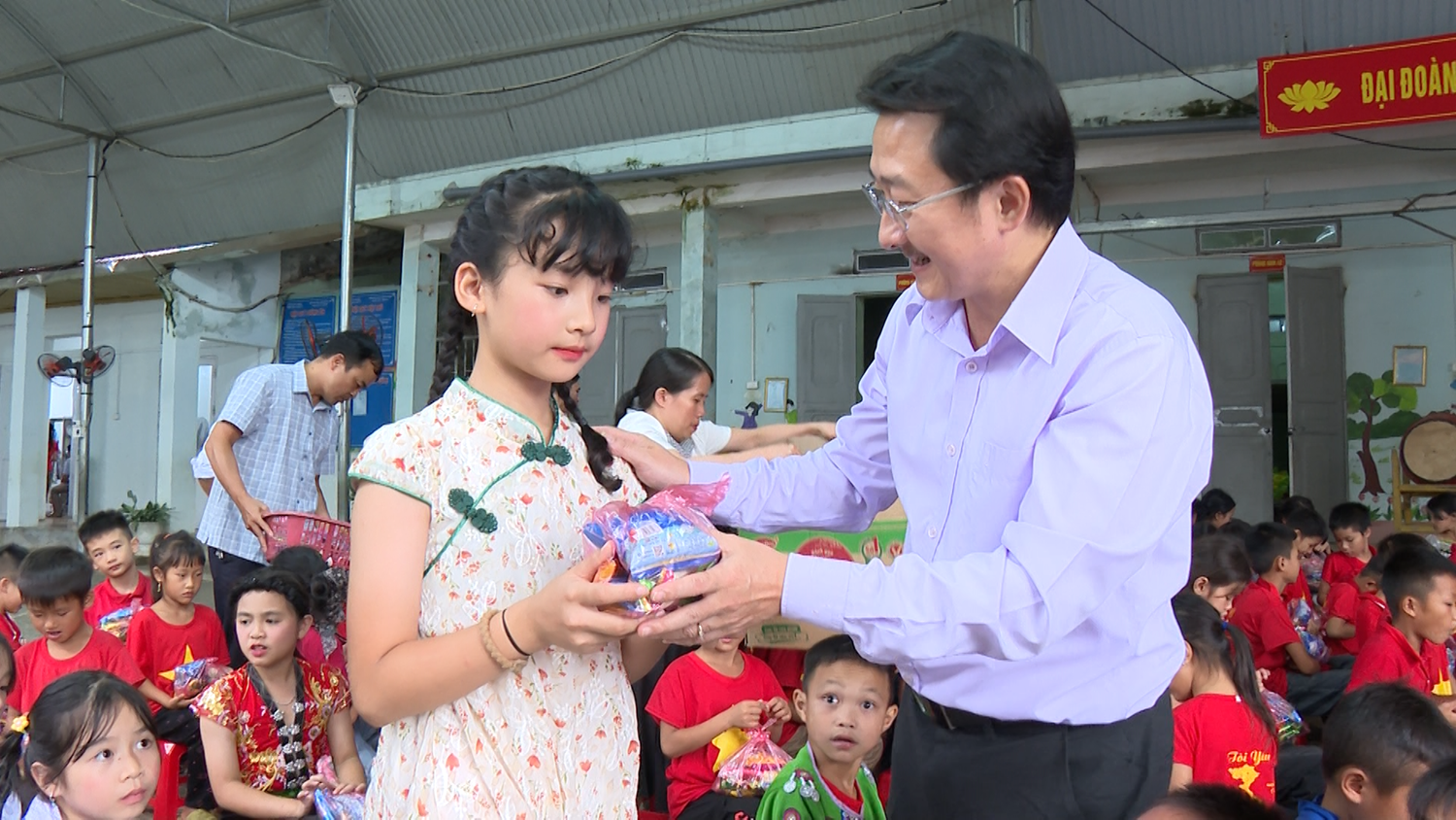 Tại các điểm đến thăm, đồng chí Sùng A Hồ - Phó Bí thư Thường trực Tỉnh ủy, Chủ tịch Ủy ban MTTQ Việt Nam tỉnh ân cần hỏi thăm tình hình học tập, đời sống của các cháu thiếu nhi. Đồng chí chúc các cháu có một Tết Trung thu tràn ngập tình yêu thương.