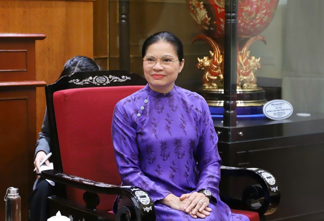 | Bà Hà Thị Nga, Ủy viên Trung ương Đảng, Phó Chủ tịch Ủy ban Trung ương MTTQ Việt Nam tại buổi tiếp |