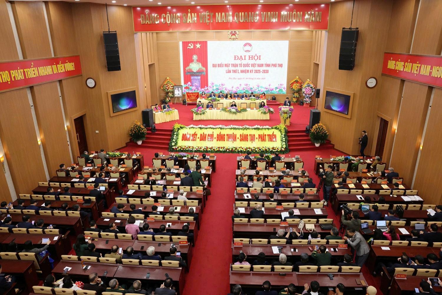 Phát biểu chỉ đạo tại Đại hội, Phó Chủ tịch Ủy ban Trung ương MTTQ Việt Nam Hoàng Công Thủy nhấn mạnh, Phú Thọ là mảnh đất cội nguồn của dân tộc, có truyền thống văn hóa lịch sử gắn liền với lịch sử dựng nước và giữ nước của dân tộc; từ ngàn đời xưa, các Vua Hùng đã chọn đây là đất khởi nghiệp dựng nước, xây dựng nhà nước Văn Lang, nhà nước đầu tiên của dân tộc Việt Nam. Hợp nhất 03 tỉnh Phú Thọ - Vĩnh Phúc - Hòa Bình về chung một mái nhà đất Tổ giúp Phú Thọ mới hội đủ sức hút về địa lý, kinh tế, văn hóa; mở ra không gian, dư địa phát triển với quy mô, tiềm năng và lợi thế lớn hơn; khẳng định là động lực phát triển, điểm tựa bứt phá của vùng Trung du và miền núi Bắc Bộ, là cầu nối giữa vùng Thủ đô và vùng Tây Bắc rộng lớn.