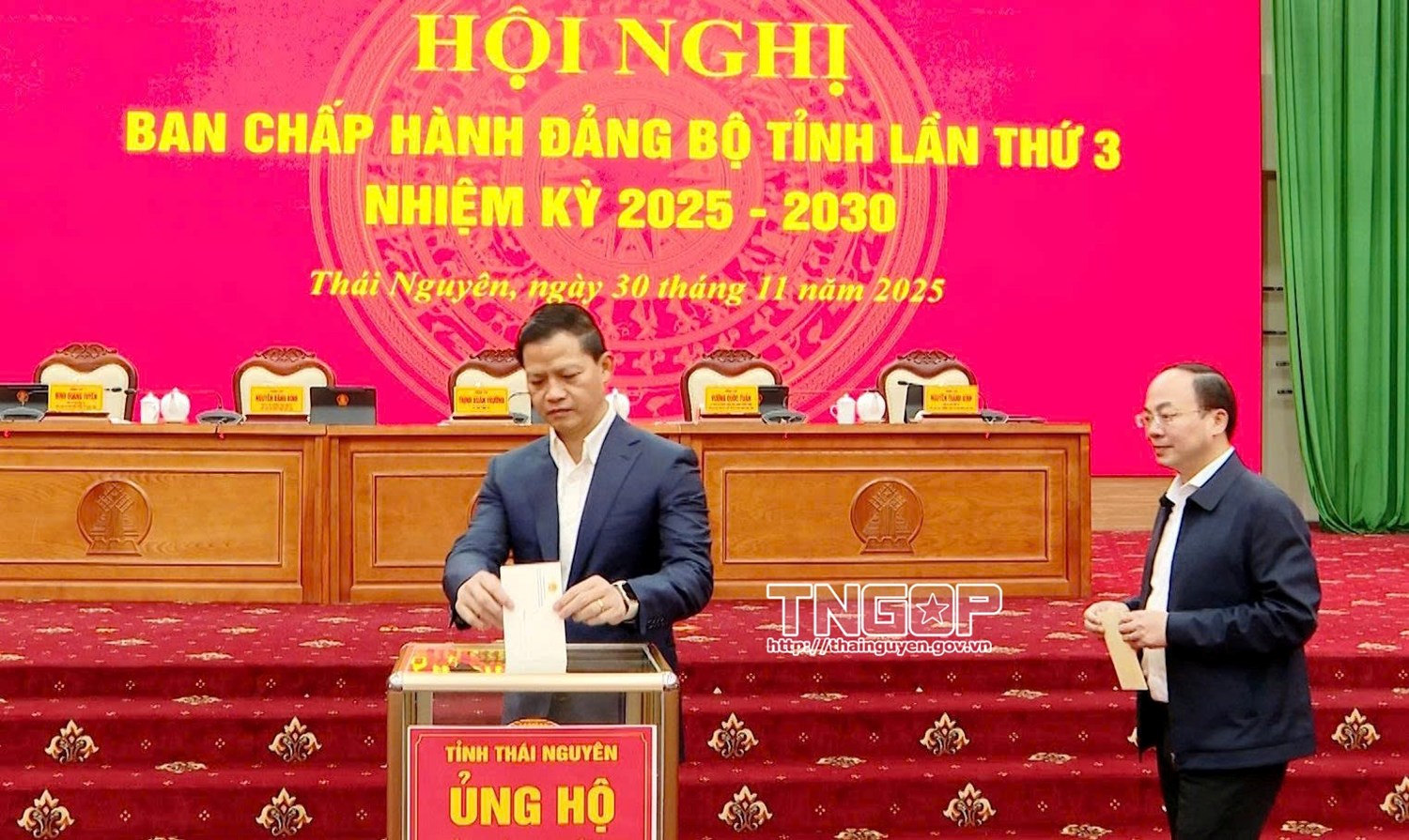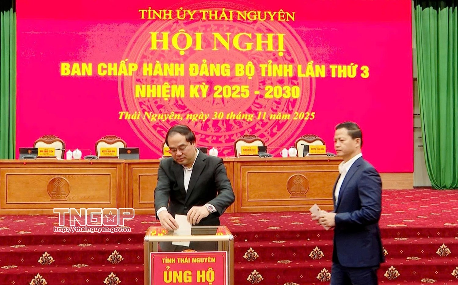 (Mặt trận) - Sáng 30/11, trước khi bắt đầu Hội nghị Ban Chấp hành Đảng bộ tỉnh, Tỉnh ủy Thái Nguyên tổ chức Lễ phát động ủng hộ đồng bào miền Trung chịu ảnh hưởng bão lũ. Các đại biểu đã dành một phút tưởng niệm những nạn nhân tử vong do thiên tai.