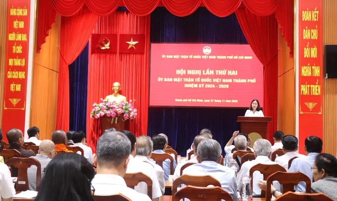 Sáng 27/11, Ủy ban Mặt trận Tổ quốc (MTTQ) Việt Nam TPHCM tổ chức Hội nghị lần thứ 2, nhiệm kỳ 2024 - 2029. Hội nghị nhằm thông qua báo cáo tiến độ thực hiện các nội dung liên quan đến công tác tổ chức Đại hội đại biểu Ủy ban MTTQ Việt Nam TPHCM lần thứ I, nhiệm kỳ 2025-2030; thảo luận, cho ý kiến và thực hiện quy trình công nhận các tổ chức thành viên và hiệp thương, kiện toàn nhân sự Ủy viên Ủy ban MTTQ Việt Nam TPHCM nhiệm kỳ 2024 - 2029.