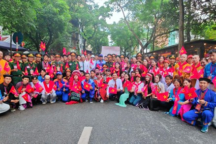 | Khối diễu hành Đại đoàn kết các dân tộc Việt Nam có sự tham gia của 10 cựu chiến binh đại diện cho người có công với cách mạng |