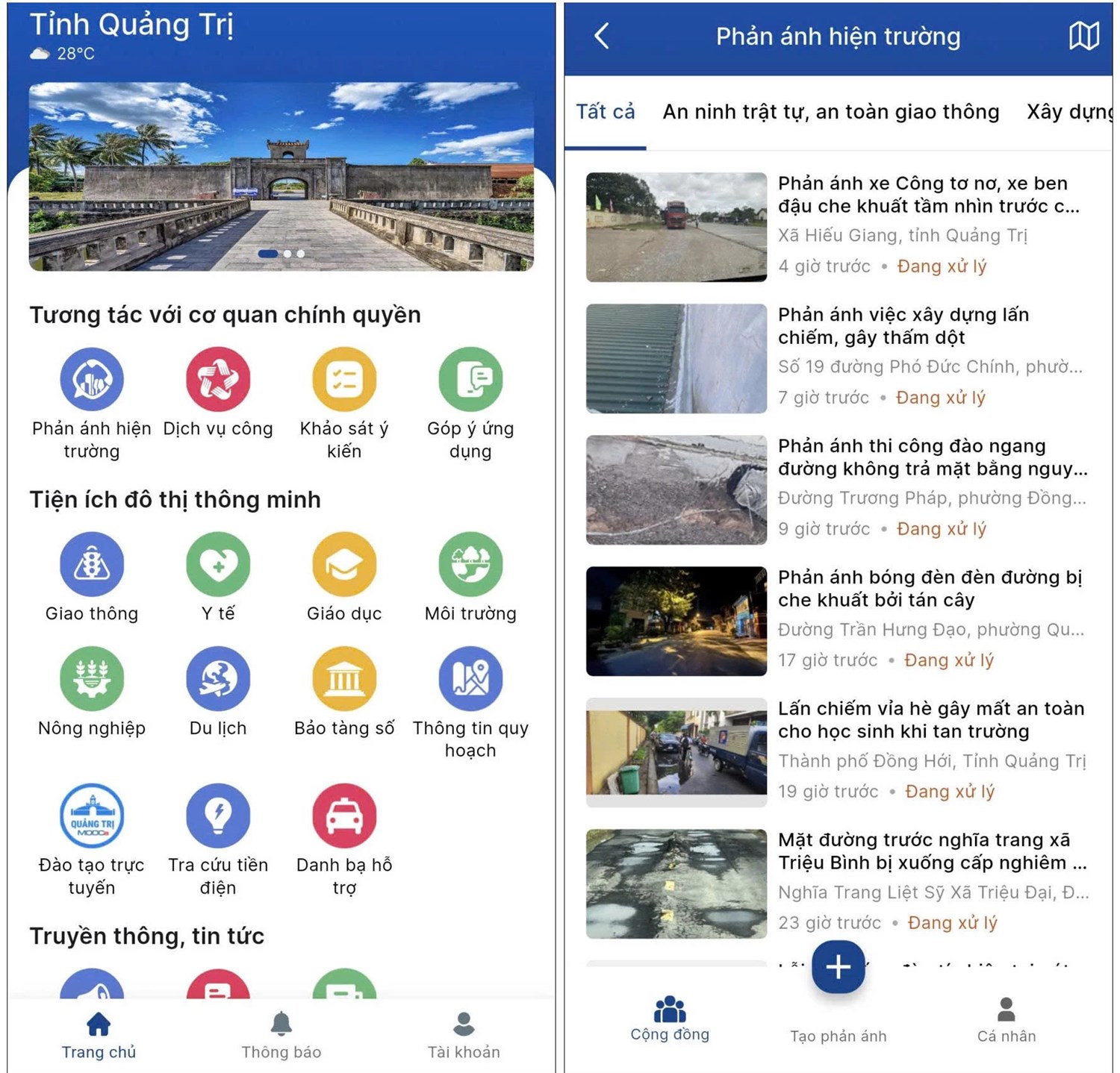 QUANG TRI-S hiện có 18 tính năng chính, như: Phản ánh hiện trường, dịch vụ công, khảo sát ý kiến, góp ý ứng dụng, giao thông, y tế, giáo dục, môi trường, nông nghiệp, du lịch, bảo tàng số, phản ánh hiện trường, thông tin cảnh báo…