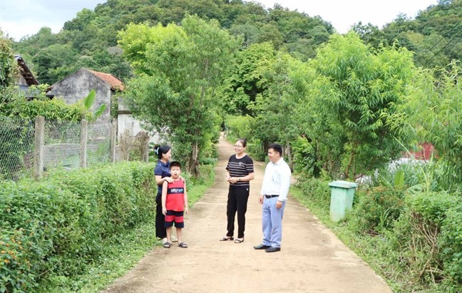 Dẫn chúng tôi trên con đường bê tông khang trang, sạch đẹp, bà Hoa chia sẻ: Bản có 78 hộ dân, gần 200 nhân khẩu, chủ yếu là dân tộc Kinh và dân tộc Thái. Từ năm 2021 đến nay, Ban công tác mặt trận của bản vận động nhân dân đóng góp gần 60 triệu đồng xây mới, mua sắm các thiết chế nhà văn hóa, khu thể thao, lắp đặt hệ thống điện chiếu sáng; tham gia đóng góp quỹ đền ơn, đáp nghĩa, quỹ vì người nghèo, ủng hộ các địa phương, gia đình gặp khó khăn, với số tiền hơn 30 triệu đồng. Chủ nhật hằng tuần, nhân dân trong bản ra quân thu gom rác thải, giữ gìn cảnh quan môi trường “sáng, xanh, sạch, đẹp, an toàn”.