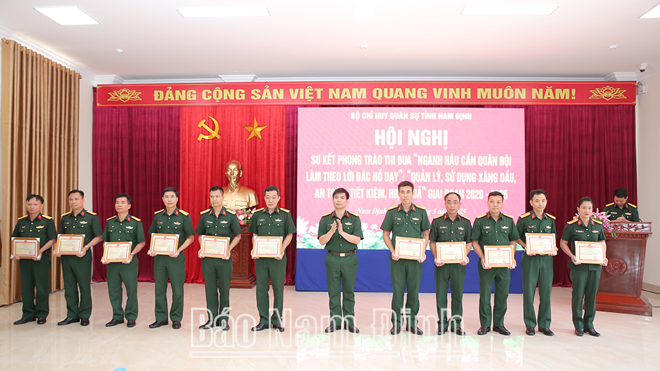 Giai đoạn 2020 - 2025, phong trào thi đua “Ngành Hậu cần Quân đội làm theo lời Bác Hồ dạy” trong lực lượng vũ trang tỉnh Nam Định đã được triển khai sâu rộng, tạo động lực quan trọng nâng cao chất lượng bảo đảm hậu cần toàn diện, góp phần thực hiện thắng lợi mọi nhiệm vụ quân sự, quốc phòng tại địa phương. Ngành hậu cần lực lượng vũ trang (LLVT) tỉnh đã làm tốt công tác bảo đảm vật chất, hậu cần sẵn sàng chiến đấu cho hàng trăm cuộc diễn tập các cấp, ứng phó hiệu quả với tình huống thiên tai, dịch bệnh; nổi bật là bảo đảm hơn 300 tấn vật chất trong diễn tập phòng chống dịch COVID-19. Trên các mặt công tác quân nhu, quân y, doanh trại, xăng dầu, vận tải, ngành hậu cần đều đạt nhiều kết quả tích cực. Toàn tỉnh đã tiếp nhận, cấp phát hơn 110 nghìn suất quân trang các loại; tổ chức tăng gia sản xuất thu hoạch gần 250 tấn thực phẩm, nâng mức ăn thêm từ 5.000 - 15.000 đồng/người/ngày. Quân số khỏe duy trì trên 98,8%; tổ chức khám bệnh, tư vấn sức khỏe cho gần 62 nghìn lượt người dân. Trong công tác doanh trại, đã triển khai xây dựng và nâng cấp 20 công trình với tổng kinh phí trên 334 tỷ đồng. Ngành Xăng dầu đã tiếp nhận, cấp phát trên 700 nghìn lít nhiên liệu các loại, bảo đảm an toàn tuyệt đối và đã tiết kiệm trên 10 nghìn lít, đồng thời tích cực cải tiến kỹ thuật kho trạm. Đơn vị còn giành giải Nhất cấp Quân khu trong Hội thi Kho xăng dầu cấp chiến thuật năm 2024. Công tác quản lý, thực hành tiết kiệm, chống lãng phí được triển khai nghiêm túc, minh bạch theo đúng quy định...