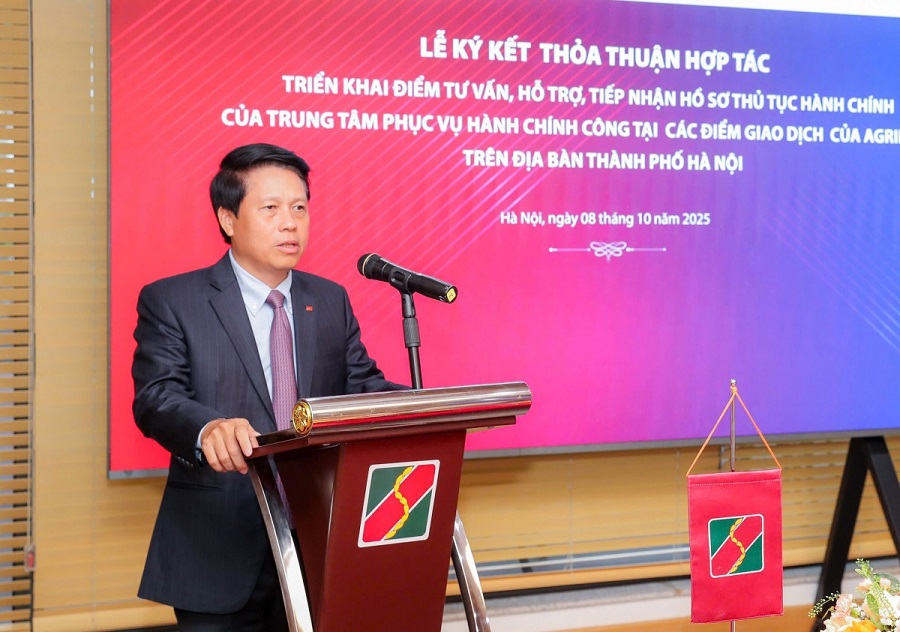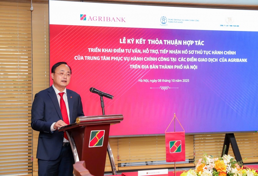 Tại buổi Lễ, ông Tô Huy Vũ - Chủ tịch HĐTV Agribank khẳng định, Lễ ký kết là bước tiến mới trong tư duy phục vụ, khi ngân hàng không chỉ là nơi giao dịch tài chính, mà còn là điểm tiếp nhận và hỗ trợ thủ tục hành chính công cho người dân và doanh nghiệp. Với mô hình liên thông 3 bên: Hành chính – Pháp lý – Tài chính, Agribank tiên phong tạo nên hệ sinh thái phục vụ toàn diện, nơi người dân, doanh nghiệp có thể thực hiện các thủ tục hành chính như: đăng ký giao dịch bảo đảm, hồ sơ đất đai, cấp đổi giấy chứng nhận; đăng ký thành lập doanh nghiệp, hộ kinh doanh; các thủ tục hành chính về hộ tịch.…ngay tại điểm giao dịch ngân hàng – nhanh chóng, minh bạch, thuận tiện. Điều này thể hiện rõ nét hình ảnh Chính phủ phục vụ – Ngân hàng đồng hành – Người dân thụ hưởng. Đây là mô hình không chỉ mang tính sáng tạo, mà còn mang ý nghĩa chính trị sâu sắc: đưa Chính phủ đến gần dân hơn, đưa ngân hàng trở thành cánh tay nối dài của Nhà nước trong cải cách hành chính.