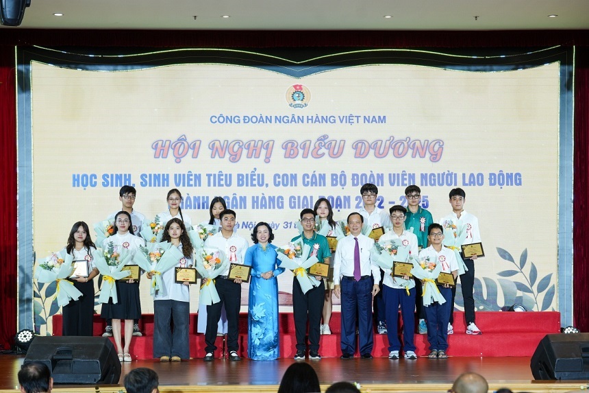 Chiều 31/7, Công đoàn Ngân hàng Việt Nam long trọng tổ chức Hội nghị biểu dương các cháu học sinh, sinh viên là con cán bộ, công chức, viên chức, người lao động ngành Ngân hàng đạt thành tích cao trong học tập, rèn luyện lần thứ 5, giai đoạn 2022-2025.