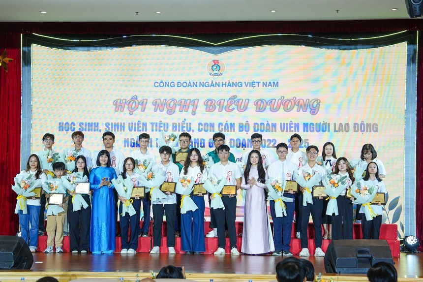 Phó Chủ tịch Thường trực Công đoàn Ngân hàng Việt Nam cho biết, tại Hội nghị hôm nay, vinh danh 200 học sinh, sinh viên tiêu biểu nhất, được tuyển chọn từ 373 cháu đủ điều kiện và được Công đoàn Ngân hàng Việt Nam khen thưởng giai đoạn 2022-2025. Thành tích của các cháu thực sự ấn tượng, trải rộng khắp các lứa tuổi, cấp học và bậc học, thông qua nhiều kỳ thi và cuộc thi uy tín, có tính cạnh tranh cao, từ các đấu trường quốc tế đến các giải thưởng cấp quốc gia về văn hóa, khoa học kỹ thuật, nghệ thuật, thể thao. Trong 373 cháu, có 17 cháu đoạt các giải thưởng quốc tế tại các cuộc thi danh giá. 285 cháu đoạt các giải thưởng cấp Quốc gia ở nhiều lĩnh vực từ các môn văn hóa đến các môn năng khiếu. 34 em là Thủ khoa các trường Đại học danh giá trên cả nước, đạt danh hiệu “Sinh viên 5 tốt” cấp Trung ương, “Sao Tháng Giêng” do Trung ương Đoàn – Hội Sinh viên Việt Nam trao tặng.