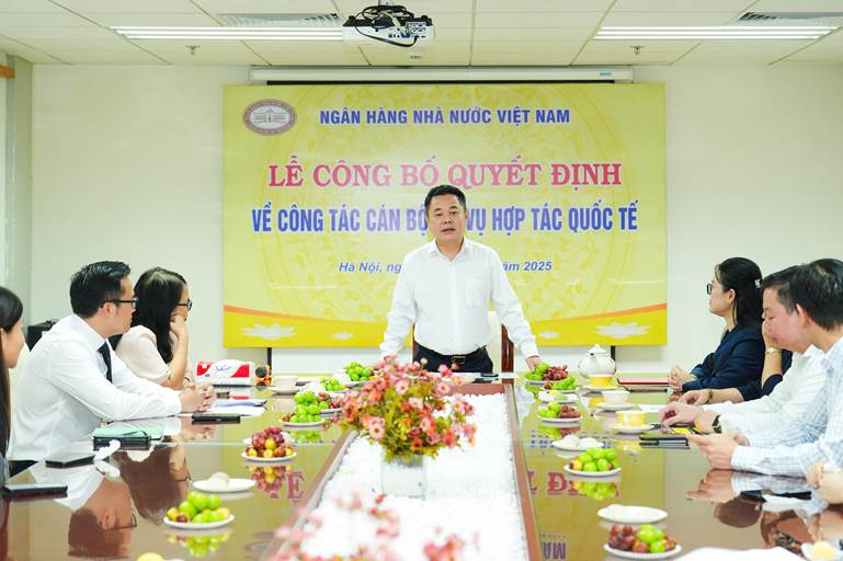 Ngày 22/10/2025, Ngân hàng Nhà nước Việt Nam (NHNN) đã trang trọng tổ chức Lễ công bố và trao Quyết định về việc bổ nhiệm cán bộ giữ các chức vụ lãnh đạo tại Vụ HTQT. Buổi lễ có sự hiện diện của ông Nguyễn Ngọc Cảnh, Ủy viên Ban Thường vụ Đảng ủy, Phó Thống đốc NHNN; đại diện lãnh đạo Đảng uỷ NHNN, Vụ Tổ chức Cán bộ và toàn thể cán bộ Vụ HTQT.