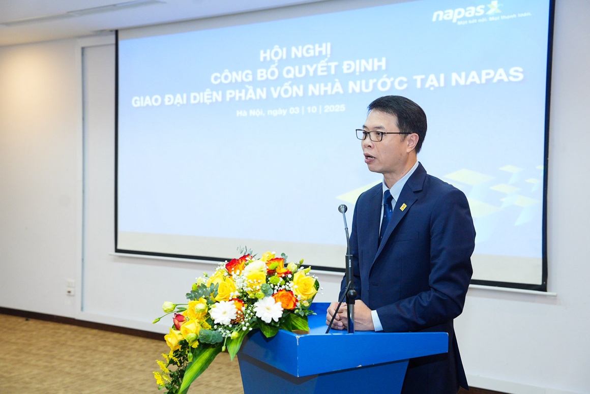 Ngày 03/10/2025, Ngân hàng Nhà nước Việt Nam (NHNN) đã tổ chức Hội nghị công bố và trao Quyết định của Thống đốc NHNN về việc cử người đại diện vốn nhà nước tại Công ty Cổ phần Thanh toán Quốc gia Việt Nam (NAPAS).