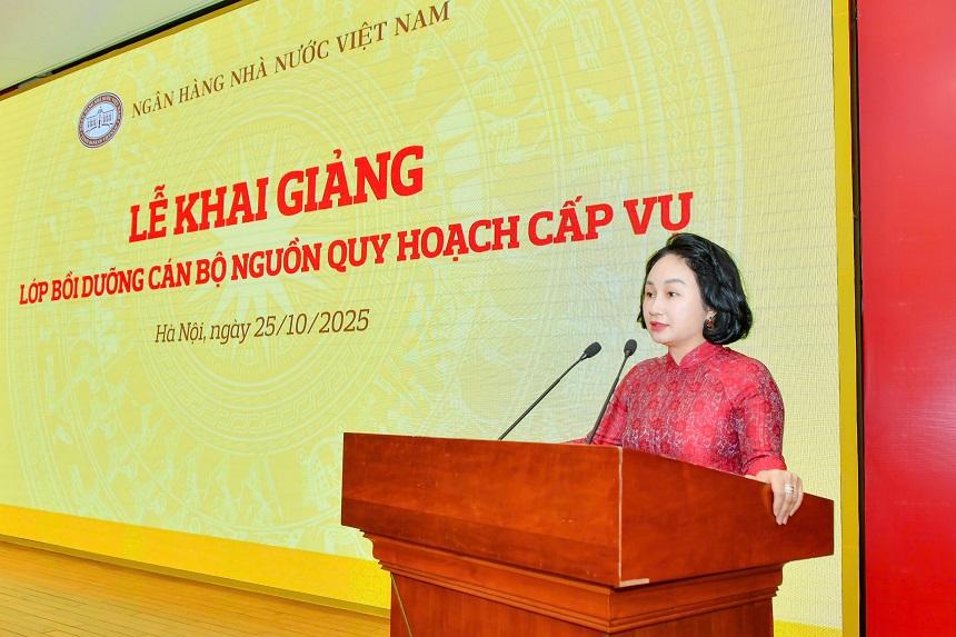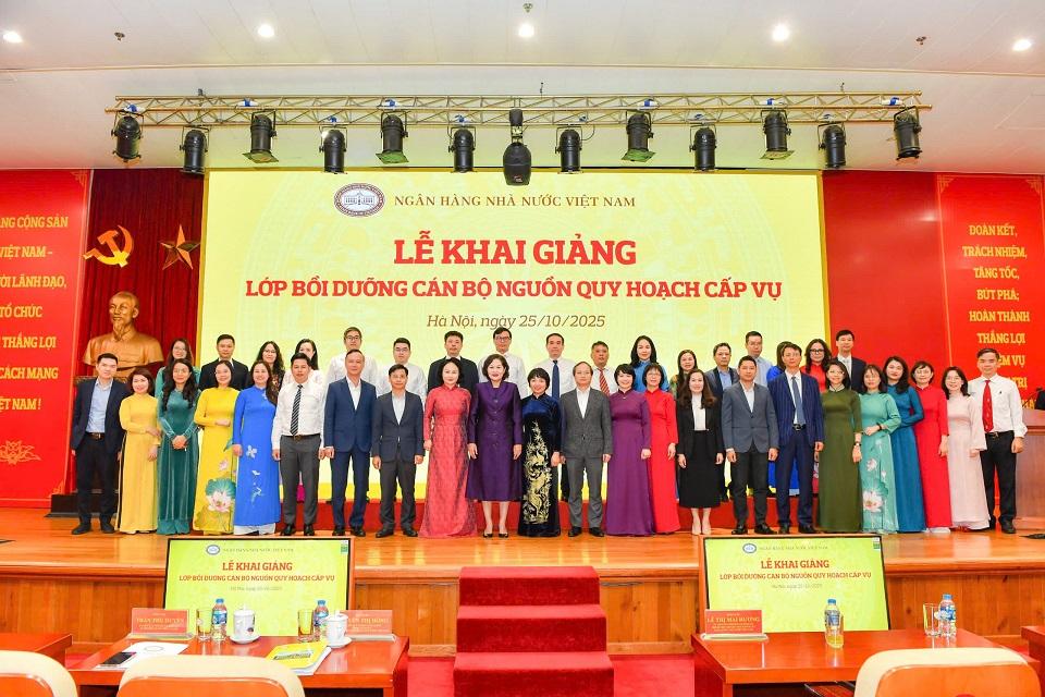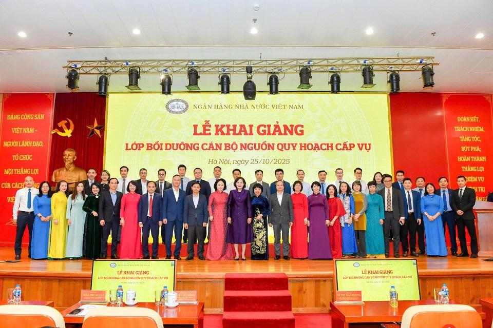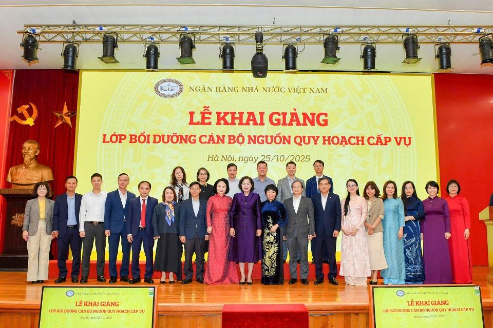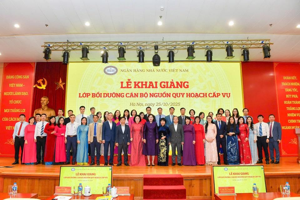 Ngày 25/10/2025, Ngân hàng Nhà nước Việt Nam (NHNN) tổ chức Lễ khai giảng Lớp bồi dưỡng cán bộ nguồn quy hoạch cấp Vụ. Đồng chí Nguyễn Thị Hồng - Ủy viên Ban Chấp hành Trung ương Đảng, Bí thư Đảng ủy, Thống đốc NHNN dự và phát biểu chỉ đạo tại buổi lễ. Tham dự Lễ khai giảng có lãnh đạo Đảng ủy NHNN, các Vụ, Cục thuộc NHNN.