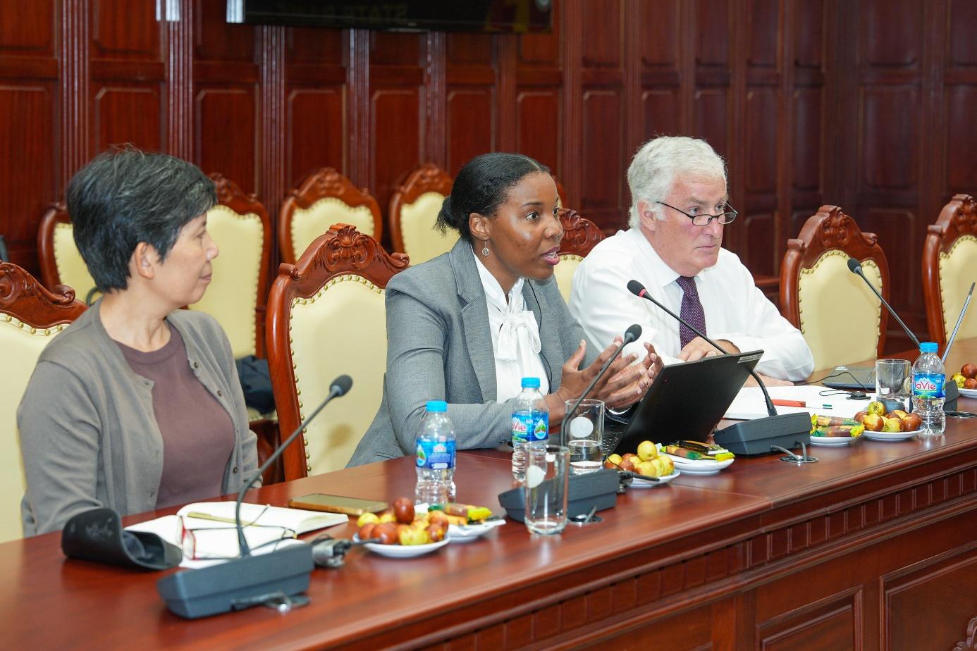 Đoàn hỗ trợ kỹ thuật của Quỹ Tiền tệ Quốc tế (IMF) tại buổi làm việc (Ảnh: Hoàng Giáp)