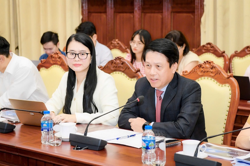 Phó Thống đốc Phạm Tiến Dũng phát biểu tại buổi làm việc