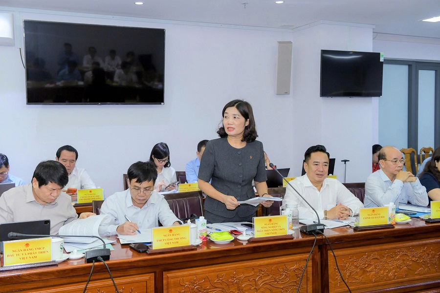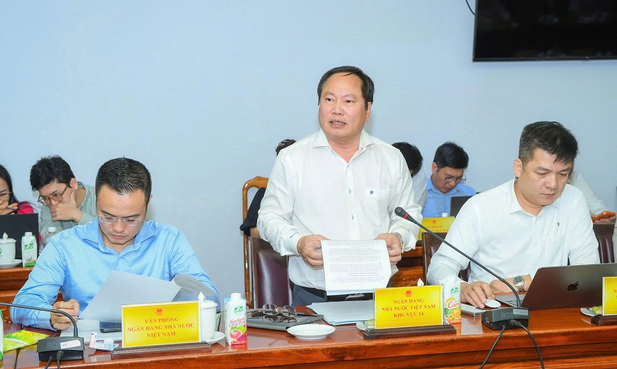 Ông Trần Quốc Hà - quyền Giám đốc NHNN chi nhánh Khu vực 14 báo cáo về hoạt động tín dụng, lãi suất ngân hàng trên địa bàn