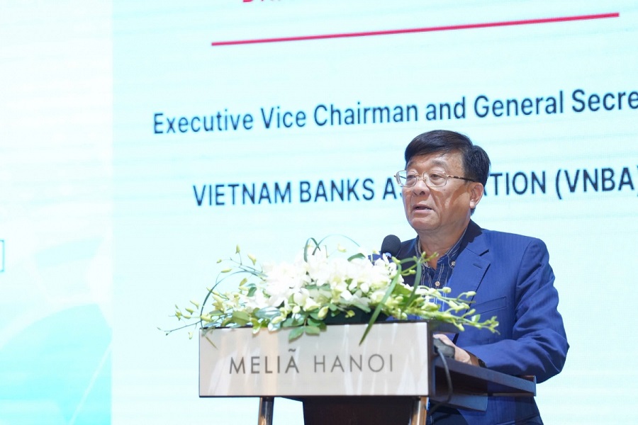 Phó Chủ tịch kiêm Tổng Thư ký Hiệp hội Ngân hàng Nguyễn Quốc Hùng phát biểu tại Tọa đàm về vai trò quản trị rủi ro trong bối cảnh kinh tế biến động
