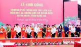 Tổng Bí thư Tô Lâm cùng các đồng chí lãnh đạo Đảng, Nhà nước, bộ, ngành Trung ương, tỉnh Nghệ An thực hiện nghi thức khởi công xây dựng Trường Phổ thông nội trú liên cấp TH và THCS Na Ngoi. Ảnh: Phạm Bằng