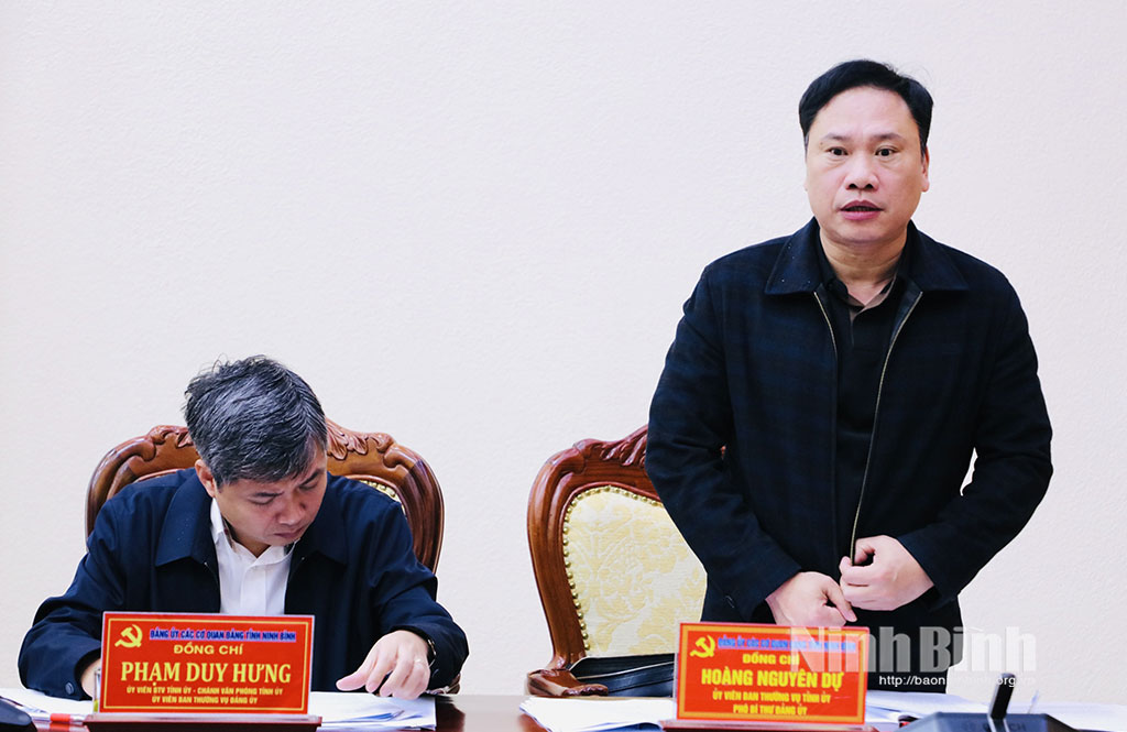 Tại hội nghị, các đại biểu đã thảo luận, cho ý kiến vào Dự thảo Báo cáo kết quả lãnh đạo thực hiện nhiệm vụ tháng 10; trọng tâm công tác tháng 11 năm 2025 và thống nhất đánh giá: Trong tháng 10, Đảng ủy, Ban Thường vụ Đảng ủy đã tập trung lãnh đạo, chỉ đạo chuẩn bị chu đáo các điều kiện và tổ chức Đoàn đại biểu Đảng bộ các cơ quan Đảng tỉnh dự Đại hội Đảng bộ tỉnh Ninh Bình lần thứ I, nhiệm kỳ 2025 - 2030 đảm bảo an toàn, nghiêm túc; tham gia đầy đủ, có trách nhiệm các hoạt động của Đại hội. Sau Đại hội, Đảng ủy đã chỉ đạo tổ chức thông tin kịp thời kết quả Đại hội đến các tổ chức cơ sở đảng bằng nhiều hình thức phù hợp.