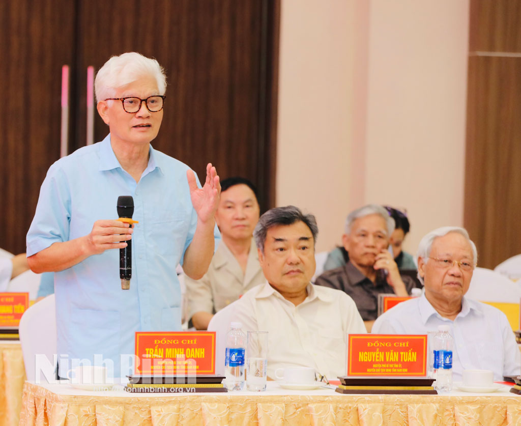 Phát biểu kết luận hội nghị, đồng chí Bí thư Tỉnh ủy Trương Quốc Huy trân trọng cảm ơn và đánh giá cao tinh thần trách nhiệm, ý kiến phát biểu tâm huyết, quý báu của các đồng chí nguyên Thường trực Tỉnh ủy, nguyên Ủy viên Ban Thường vụ Tỉnh ủy, nguyên lãnh đạo HĐND, UBND, Đoàn đại biểu Quốc hội của 3 tỉnh Hà Nam, Nam Định, Ninh Bình qua các thời kỳ. Các đồng chí đã tập trung thảo luận, phân tích kỹ lưỡng, đánh giá kết quả đạt được, chỉ rõ hạn chế, đồng thời đề xuất nhiều ý tưởng, giải pháp mới có tầm chiến lược, sát thực tiễn. Những ý kiến này góp phần làm rõ nhiều vấn đề quan trọng để tiếp tục xây dựng, hoàn thiện dự thảo Báo cáo chính trị, bảo đảm văn kiện thật sự là kết tinh trí tuệ tập thể, phản ánh khát vọng, ý chí, niềm tin và quyết tâm cao của Đảng bộ, Chính quyền và Nhân dân tỉnh Ninh Bình.