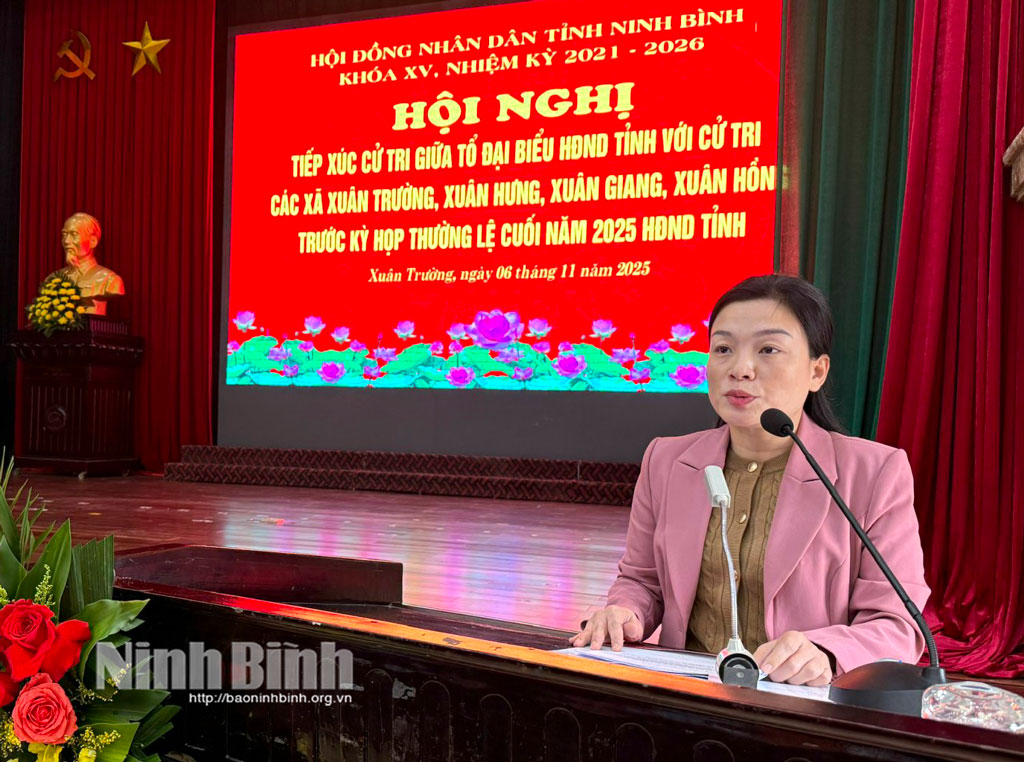 Phát biểu tại hội nghị tiếp xúc cử tri, đồng chí Phó Chủ tịch UBND tỉnh Hà Lan Anh ghi nhận, cảm ơn những ý kiến đóng góp thiết thực của cử tri các xã: Xuân Trường, Xuân Hồng, Xuân Hưng, Xuân Giang. Thay mặt Tổ đại biểu HĐND tỉnh, đồng chí tiếp thu và làm rõ một số nội dung cử tri quan tâm, đề xuất về: phân cấp, phân quyền cho các xã; hỗ trợ trả nợ xây dựng cơ bản; giải quyết chế độ, chính sách cho đội ngũ cán bộ; cấp Giấy chứng nhận quyền sử dung đất… Đồng chí khẳng định, các ý kiến thuộc thẩm quyền của tỉnh, Tổ đại biểu HĐND tỉnh sẽ tổng hợp, trình HĐND tỉnh xem xét giải quyết trong kỳ họp tới; đồng thời chuyển đến các cơ quan chức năng liên quan để nghiên cứu, xử lý theo quy định.