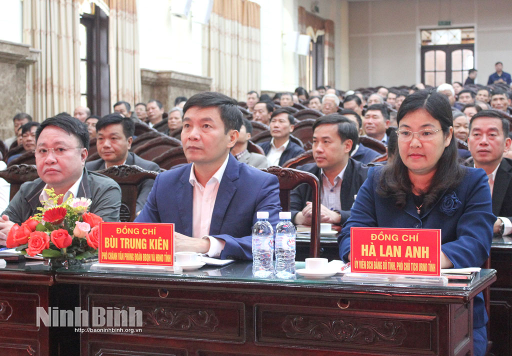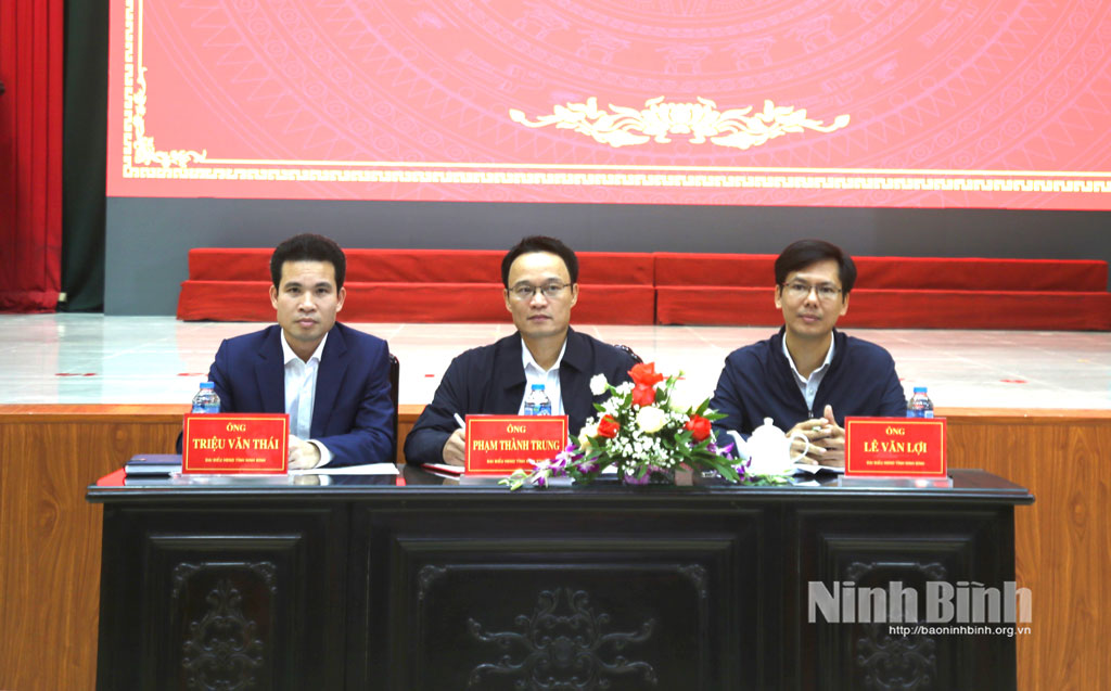 Các đồng chí: Hoàng Nguyên Dự, Ủy viên Ban Thường vụ Tỉnh ủy, Phó Bí thư Thường trực Đảng ủy các cơ quan Đảng tỉnh; Phạm Thị Thu Hằng, Ủy viên Ban Thường vụ Tỉnh ủy, Tổng Biên tập Báo và phát thanh, truyền hình tỉnh; Mai Thanh Long, Tỉnh ủy viên, Phó Chủ tịch HĐND tỉnh; Phạm Quang Ái, Tỉnh ủy viên, Chánh Thanh tra tỉnh; Lê Văn Thế, Tỉnh ủy viên, Phó Chánh Văn phòng Tỉnh ủy dự hội nghị tiếp xúc.