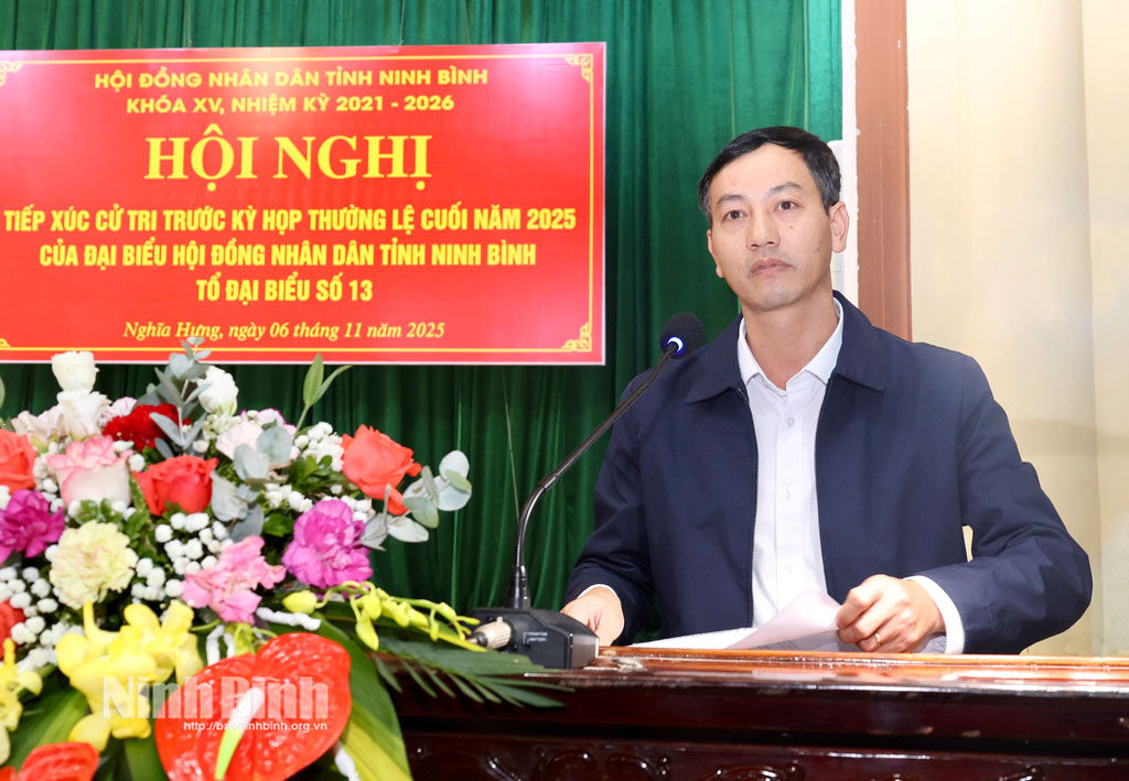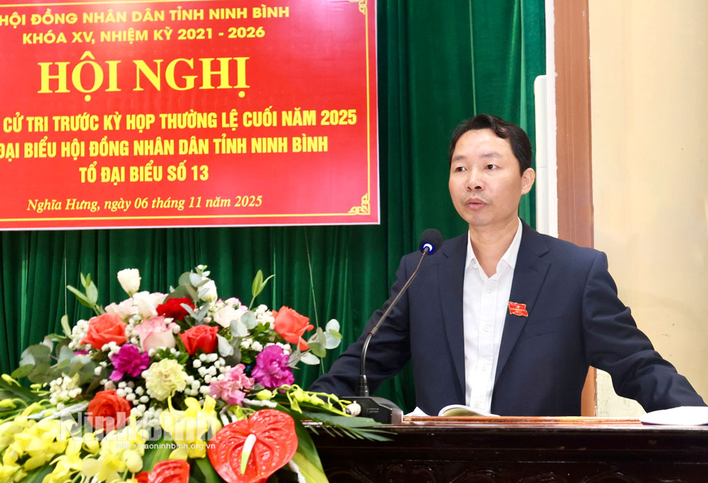 Phát biểu tại hội nghị tiếp xúc cử tri, đồng chí Nguyễn Đức Toàn, Ủy viên Ban Thường vụ Tỉnh ủy, Trưởng Ban Tuyên giáo và Dân vận Tỉnh ủy đã cảm ơn, ghi nhận những ý kiến, kiến nghị tâm huyết, chính đáng của cử tri; đồng thời tiếp thu và làm rõ một số nội dung cử tri quan tâm, đề xuất. Tổ đại biểu HĐND tỉnh sẽ tổng hợp đầy đủ các ý kiến, kiến nghị của cử tri để chuyển các cấp, các ngành chức năng xem xét, giải quyết, trả lời cử tri trong thời gian sớm nhất.