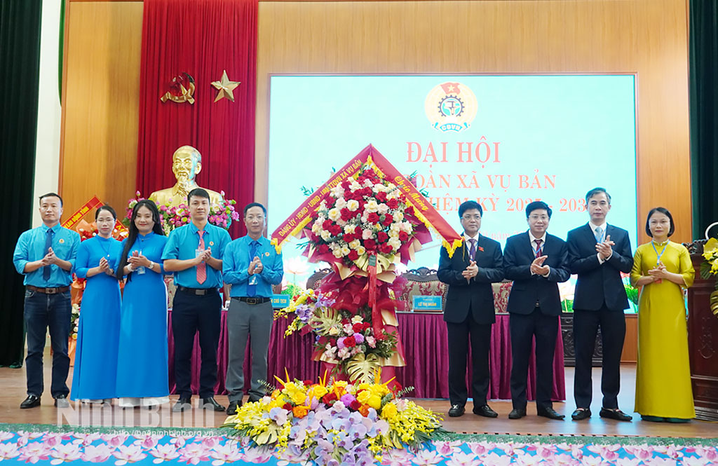 Đại hội đã công bố Quyết định của Ban Thường vụ LĐLĐ tỉnh chỉ định Ban Chấp hành, Ban Thường vụ, các chức danh chủ chốt của Công đoàn xã Vụ Bản nhiệm kỳ 2025-2030; chỉ định đại biểu đi dự Đại hội Công đoàn tỉnh Ninh Bình nhiệm kỳ 2025-2030. Đồng chí Nguyễn Thành Minh được chỉ định giữ chức Chủ tịch Công đoàn xã Vụ Bản nhiệm kỳ 2025-2030.