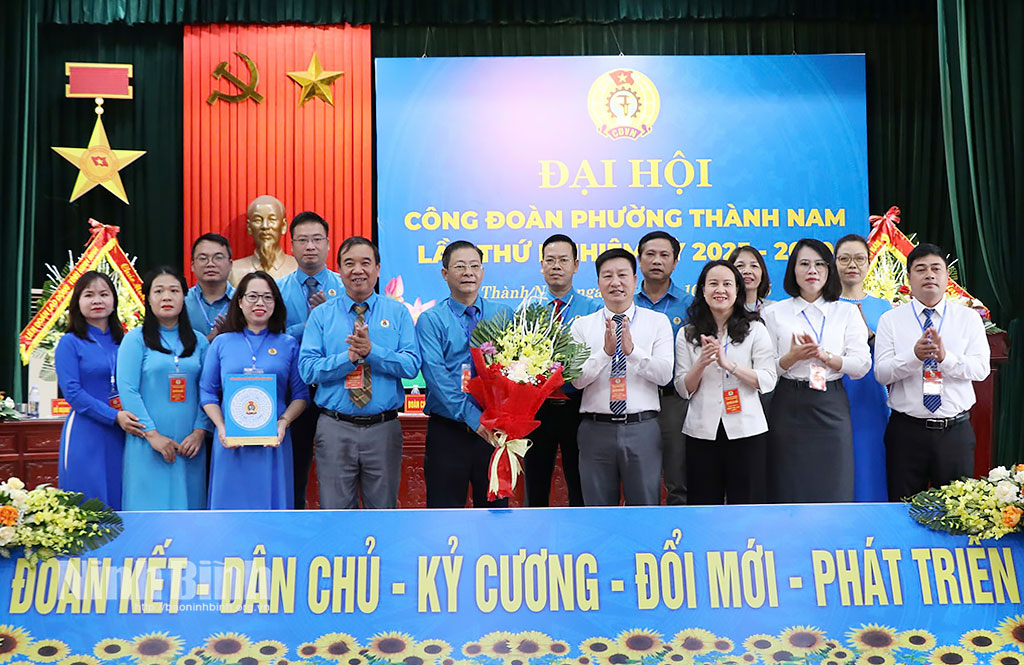 * Dự Đại hội Công đoàn phường Thành Nam có lãnh đạo LĐLĐ tỉnh; lãnh đạo các phường: Đông A, Thiên Trường, Mỹ Lộc và 156 đại biểu ưu tú, đại diện cho gần 5.500 đoàn viên công đoàn trên địa bàn.