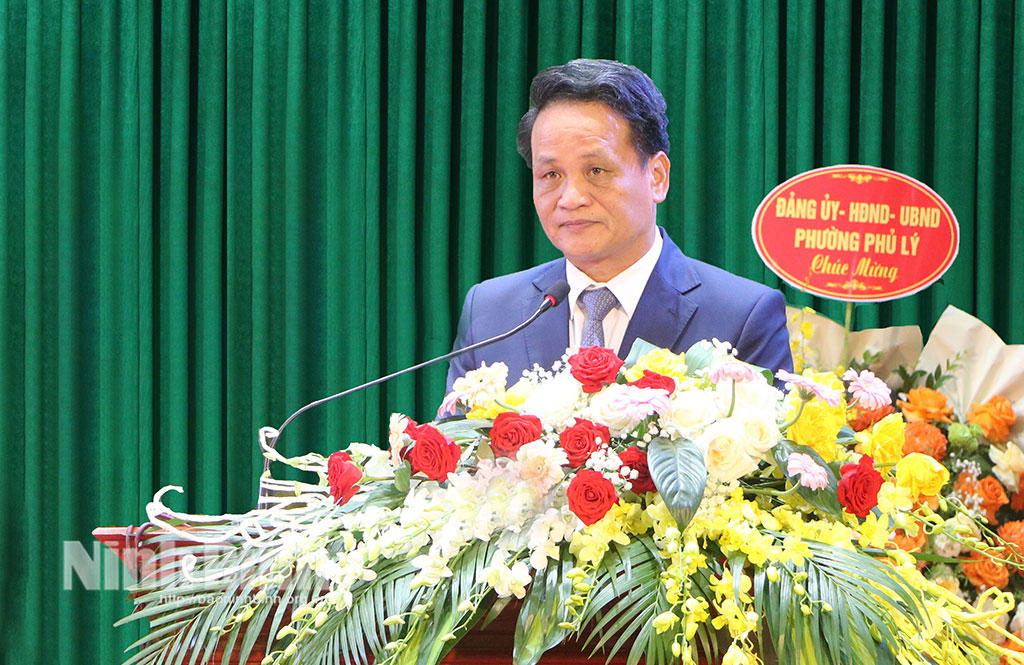 Thay mặt Ban Chấp hành Đảng bộ tỉnh, đồng chí Đào Đình Tùng, Ủy viên Ban Thường vụ Tỉnh ủy, Bí thư Đảng ủy phường Phủ Lý ghi nhận và biểu dương những kết quả toàn diện mà Đảng bộ, chính quyền và nhân dân phường Phù Vân đã đạt được trong nhiệm kỳ qua. Đồng chí nhấn mạnh: Với tinh thần trách nhiệm cao trước Đảng bộ và nhân dân phường, Ban Chấp hành Đảng bộ phường Phù Vân cần nhanh chóng ổn định tổ chức, tận dụng các lợi thế sẵn có của địa phương, đồng thời khẩn trương khắc phục những khó khăn, hạn chế đã được chỉ ra. Sớm hoàn thiện bộ máy chính quyền tinh gọn, hoạt động hiệu lực, hiệu quả, gần dân, sát dân, góp phần vào sự phát triển chung của tỉnh.