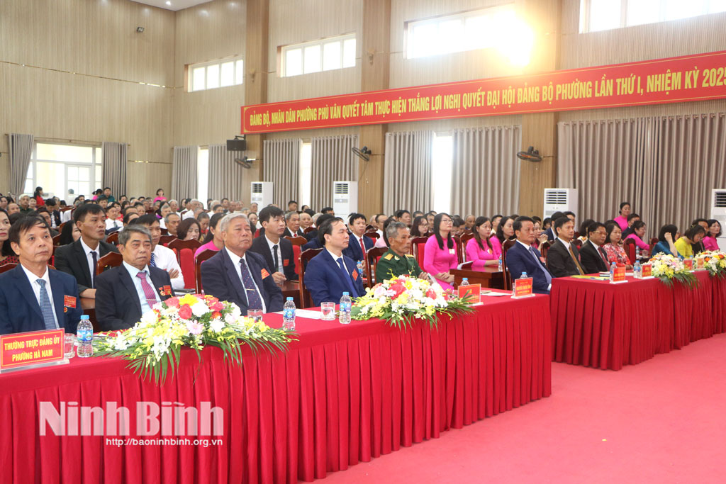 Dự và chỉ đạo Đại hội có đồng chí Đào Đình Tùng, Ủy viên Ban Thường vụ Tỉnh ủy, Bí thư Đảng ủy, Chủ tịch HĐND phường Phủ Lý. Cùng dự có đại diện các Ban Xây dựng Đảng của Tỉnh ủy; một số sở, ngành, xã, phường trong tỉnh và 250 đại biểu chính thức đại diện cho trên 1.800 đảng viên trong toàn Đảng bộ phường.