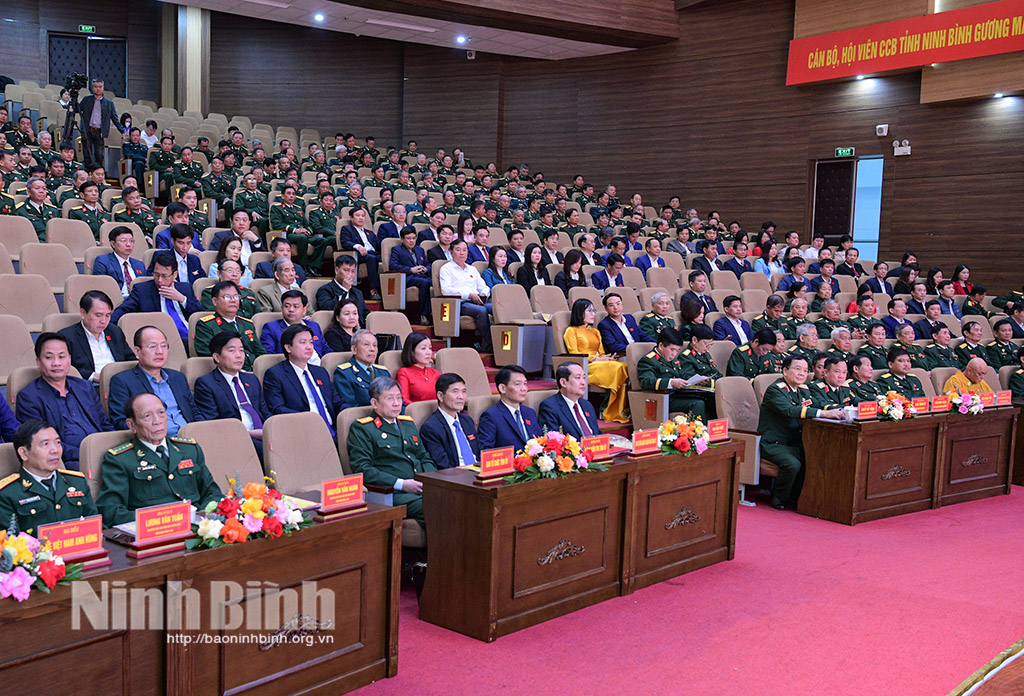 Về phía tỉnh Ninh Bình, dự Đại hội có các đồng chí Ủy viên Ban Thường vụ Tỉnh ủy; đại diện lãnh đạo HĐND, UBND, Ủy ban MTTQ Việt Nam tỉnh, Đoàn ĐBQH tỉnh; lãnh đạo các tổ chức chính trị - xã hội tỉnh; đại diện các sở, ban, ngành, đơn vị của tỉnh; đại biểu Mẹ Việt Nam anh hùng, Anh hùng lực lượng vũ trang Nhân dân; Thường trực Đảng ủy các xã, phường; lãnh đạo Hội CCB tỉnh qua các thời kỳ và 219 đại biểu chính thức đại diện cho 222.693 cán bộ, hội viên CCB trong toàn tỉnh.