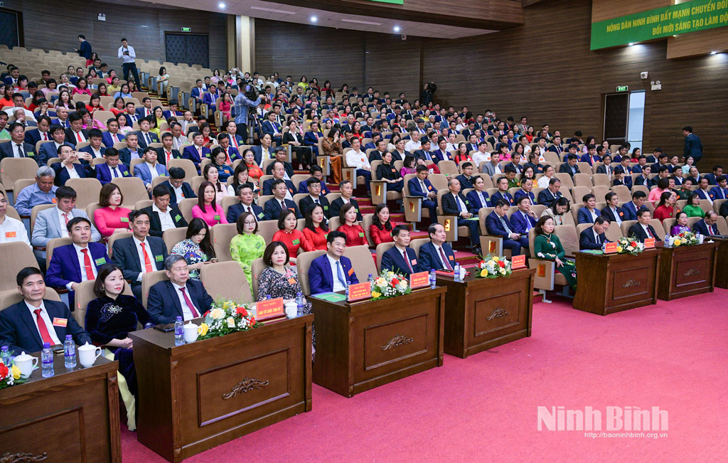 Đồng chí đánh giá cao những chuyển biến rõ nét của tổ chức Hội: Tổ chức bộ máy được kiện toàn kịp thời; công tác phát triển hội viên, sinh hoạt chi hội, bồi dưỡng cán bộ được nâng lên; nhiều mô hình sản xuất, kinh doanh hiệu quả được nhân rộng; phong trào “Nông dân thi đua sản xuất, kinh doanh giỏi” và các hoạt động hỗ trợ nông dân về vốn, kỹ thuật, chuyển đổi số được triển khai mạnh mẽ; nông dân Ninh Bình đã bắt đầu thích ứng với mô hình sản xuất hiện đại, ứng dụng công nghệ, tiếp cận thương mại điện tử.