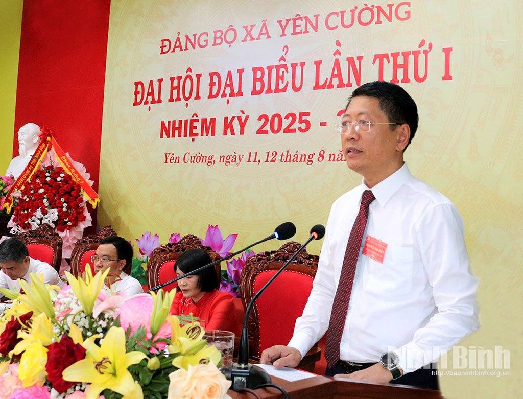 Phát biểu chỉ đạo tại Đại hội, đồng chí Trần Song Tùng, Ủy viên Ban Thường vụ Tỉnh ủy, Phó Chủ tịch Thường trực UBND tỉnh ghi nhận, đánh giá cao kết quả đã đạt được của Đảng bộ xã Yên Cường trong nhiệm kỳ 2020-2025, đặc biệt là ổn định bộ máy tổ chức sau sáp nhập, nhanh chóng vận hành theo mô hình chính quyền địa phương 2 cấp. Đồng chí Phó Chủ tịch Thường trực UBND tỉnh đề nghị, Đảng bộ xã tiếp tục phát huy tinh thần đoàn kết; tập trung xây dựng Đảng, xây dựng hệ thống chính trị trong sạch, vững mạnh; tập trung đổi mới phương thức lãnh đạo; tăng cường chất lượng sinh hoạt chi bộ; làm tốt công tác phát triển đảng viên mới; đẩy mạnh việc học tập và làm theo tư tưởng, đạo đức, phong cách Hồ Chí Minh. Phát huy tiềm năng, lợi thế là địa phương gần trung tâm chính trị, hành chính của tỉnh, xã Yên Cường cần sớm rà soát, bổ sung, điều chỉnh các quy hoạch phù hợp với quy hoạch chung của tỉnh; tập trung công tác giải phóng mặt bằng để xây dựng tuyến đường sắt tốc độ cao; thu hút các dự án đầu tư công nghệ cao và các dự án giao thông, đô thị. Đông thời huy động tối đa các nguồn lực thúc đẩy phát triển kinh tế - xã hội.