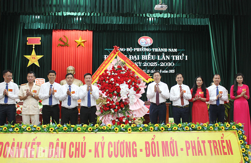 Phát biểu chỉ đạo Đại hội, đồng chí Phó trưởng Ban Nội chính Tỉnh ủy Mai Khanh đã biểu dương những kết quả đạt được của Đảng bộ, chính quyền và nhân dân phường Thành Nam, góp phần vào thành tựu chung của tỉnh. Trong nhiệm kỳ 2025-2030, đồng chí đề nghị Đảng bộ phường Thành Nam tập trung thực hiện tốt 5 nhiệm vụ trọng tâm gồm: quán triệt sâu sắc các nghị quyết, kết luận của Trung ương, của Tỉnh ủy để chủ động cụ thể hóa vào quy hoạch, kế hoạch phát triển phường gắn với quy hoạch chung đô thị thành phố Nam Định mở rộng, tập trung huy động các nguồn lực phát triển kinh tế dịch vụ - đô thị - công nghiệp, đẩy mạnh chuyển đổi số, xây dựng hạ tầng đồng bộ, hiện đại; gắn phát triển kinh tế với phát triển văn hóa - xã hội và nâng cao đời sống nhân dân; giữ vững quốc phòng - an ninh, trật tự an toàn xã hội; tiếp tục nâng cao năng lực lãnh đạo, sức chiến đấu của Đảng bộ, xây dựng hệ thống chính trị trong sạch, vững mạnh; nâng cao hiệu lực, hiệu quả quản lý, điều hành của chính quyền, thực hiện công khai, minh bạch, siết chặt kỷ luật, kỷ cương hành chính...