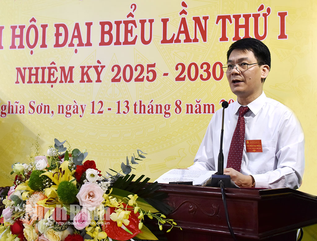 Đại hội đã công bố các quyết định của Ban Thường vụ Tỉnh ủy về việc chỉ định Ban Chấp hành Đảng bộ, Ban Thường vụ Đảng ủy, Bí thư, Phó Bí thư Đảng ủy, Ủy ban Kiểm tra Đảng ủy, Chủ nhiệm, Phó Chủ nhiệm Ủy ban Kiểm tra Đảng ủy xã Nghĩa Sơn, nhiệm kỳ 2025-2030. Đồng chí Trần Văn Dương được chỉ định giữ chức Bí thư Đảng ủy xã Nghĩa Sơn, nhiệm kỳ 2025-2030.