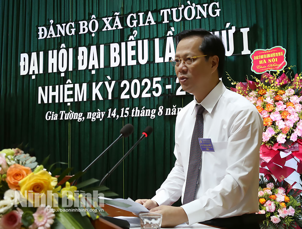 Phát biểu chỉ đạo tại Đại hội, đồng chí Nguyễn Anh Tuấn, Ủy viên Ban Thường vụ Tỉnh ủy, Chủ nhiệm Ủy ban Kiểm tra Tỉnh ủy đánh giá cao những kết quả, thành tích mà Đảng bộ và nhân dân xã Gia Tường đã đạt được trong nhiệm kỳ vừa qua. Để thực hiện thắng lợi các nhiệm vụ, chỉ tiêu của xã trong nhiệm kỳ mới, đồng chí Chủ nhiệm Ủy ban Kiểm tra Tỉnh ủy yêu cầu xã Gia Tường cần tiếp tục nâng cao năng lực lãnh đạo, sức chiến đấu của các cấp ủy, tổ chức đảng và đảng viên. Xây dựng, chỉnh đốn Đảng và hệ thống chính trị trong sạch, vững mạnh toàn diện. Tập trung các giải pháp thực hiện hiệu quả công tác sắp xếp, tinh gọn bộ máy; lựa chọn đội ngũ cán bộ có đủ phẩm chất, năng lực, uy tín đáp ứng yêu cầu nhiệm vụ trong giai đoạn mới.