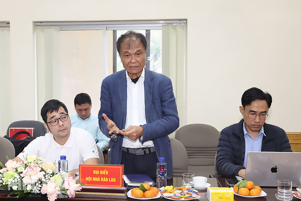 Do đó, Hội Nhà báo Lào mong muốn tiếp tục hợp tác, trao đổi kinh nghiệm trong lĩnh vực báo chí với Hội Nhà báo Việt Nam và Hội Nhà báo các tỉnh, thành phố của Việt Nam để giúp đỡ, hỗ trợ nâng cao nghiệp vụ chuyên môn cho phóng viên, nhà báo của Lào, nhất là đội ngũ nhà báo trẻ; chuyển giao ứng dụng những thành tựu khoa học công nghệ, trí tuệ nhân tạo (AI) vào hoạt động báo chí.