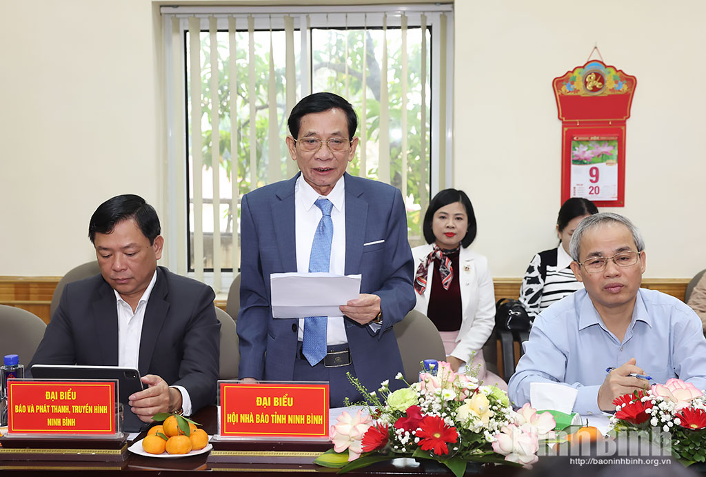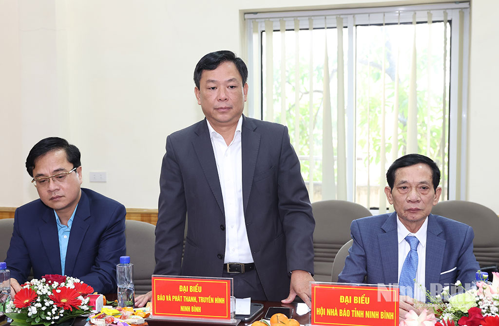 Đồng chí Chủ tịch Hội Nhà báo tỉnh Ninh Bình đã giới thiệu những nét khái quát về tỉnh Ninh Bình và hoạt động của Hội Nhà báo tỉnh, các cơ quan báo chí của tỉnh. Theo đó, từ ngày 1/7/2025, thực hiện mô hình chính quyền địa phương 2 cấp, việc sắp xếp, sáp nhập, ổn định tổ chức Hội Nhà báo tỉnh và các cơ quan báo chí của tỉnh Ninh Bình có ý nghĩa lớn, góp phần để Hội Nhà báo tỉnh và các cơ quan báo chí nhanh chóng ổn định tổ chức, duy trì nền nếp hoạt động. Đội ngũ cán bộ, hội viên Hội Nhà báo tỉnh có tư tưởng chính trị, phẩm chất, bản lĩnh người làm báo cách mạng, thực hiện nghiêm chủ trương, chính sách, pháp luật của Đảng, Nhà nước, Luật Báo chí, Điều lệ Hội, Quy định đạo đức nghề nghiệp, Quy tắc sử dụng mạng xã hội của người làm báo Việt Nam, nỗ lực phấn đấu hoàn thành tốt nhiệm vụ được giao, từng bước thích ứng công nghệ, phương thức làm báo hiện đại.