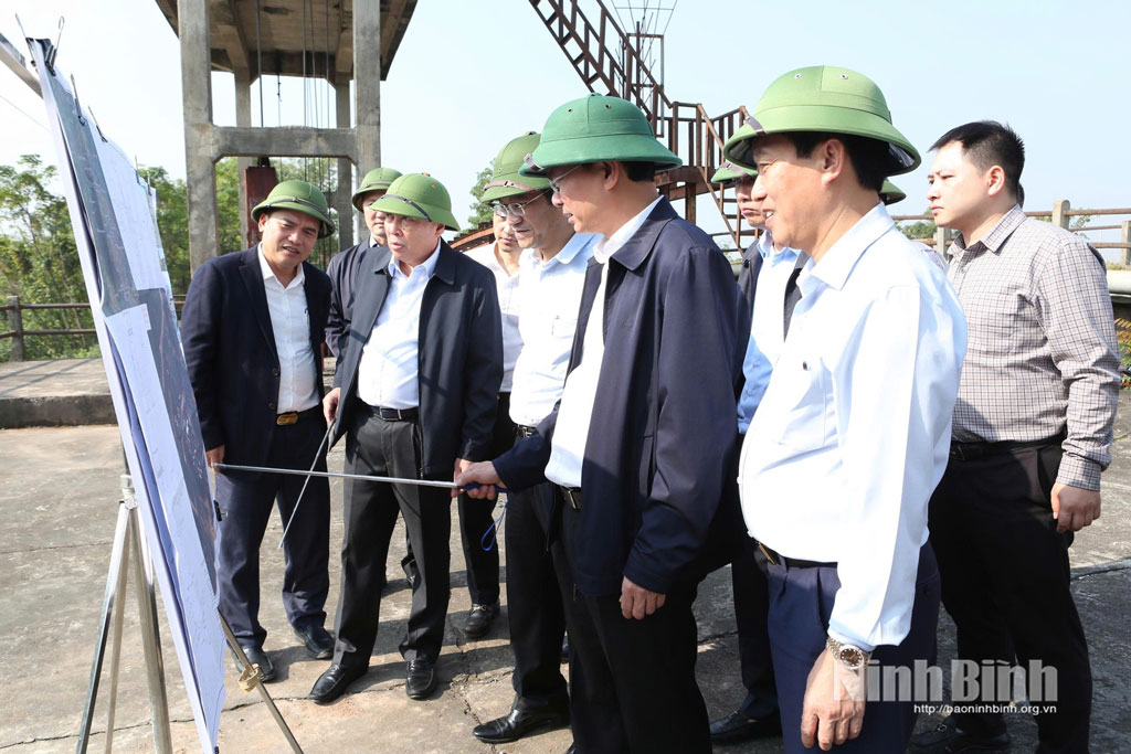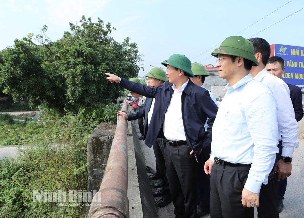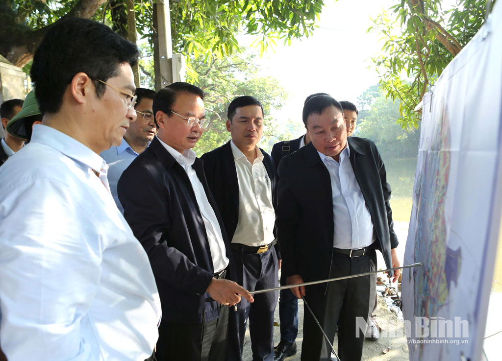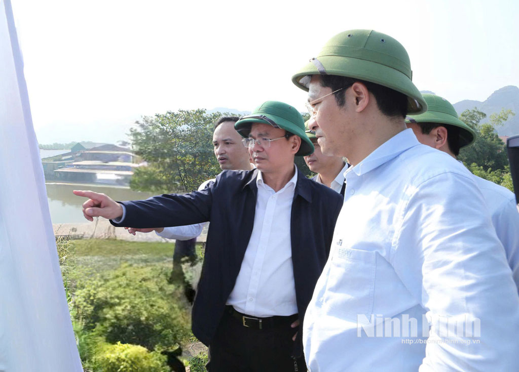 Đồng chí Bí thư Tỉnh ủy và Đoàn công tác của tỉnh đã khảo sát, kiểm tra tại âu Sông Vân, Ngã 3 sông Sào Khê, sông Vân và sông Chanh (phường Hoa Lư); khu vực Đam Khê trong (phường Nam Hoa Lư); âu Hoàng Long, âu sông Chanh (phường Tây Hoa Lư); khảo sát điểm giao kênh đường Xuân Thành với tỉnh lộ 477…