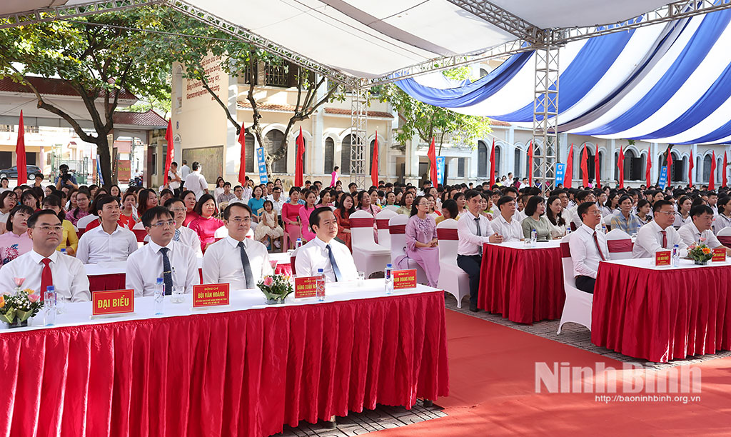 Cùng dự Lễ khai giảng có các đồng chí lãnh đạo Sở Nội vụ; Sở Giáo dục và Đào tạo (GD&ĐT); Văn phòng UBND tỉnh; phường Nam Định; Quỹ Hỗ trợ và Phát triển tài năng Thành Nam cùng hơn 1.700 cán bộ, giáo viên, học sinh nhà trường...