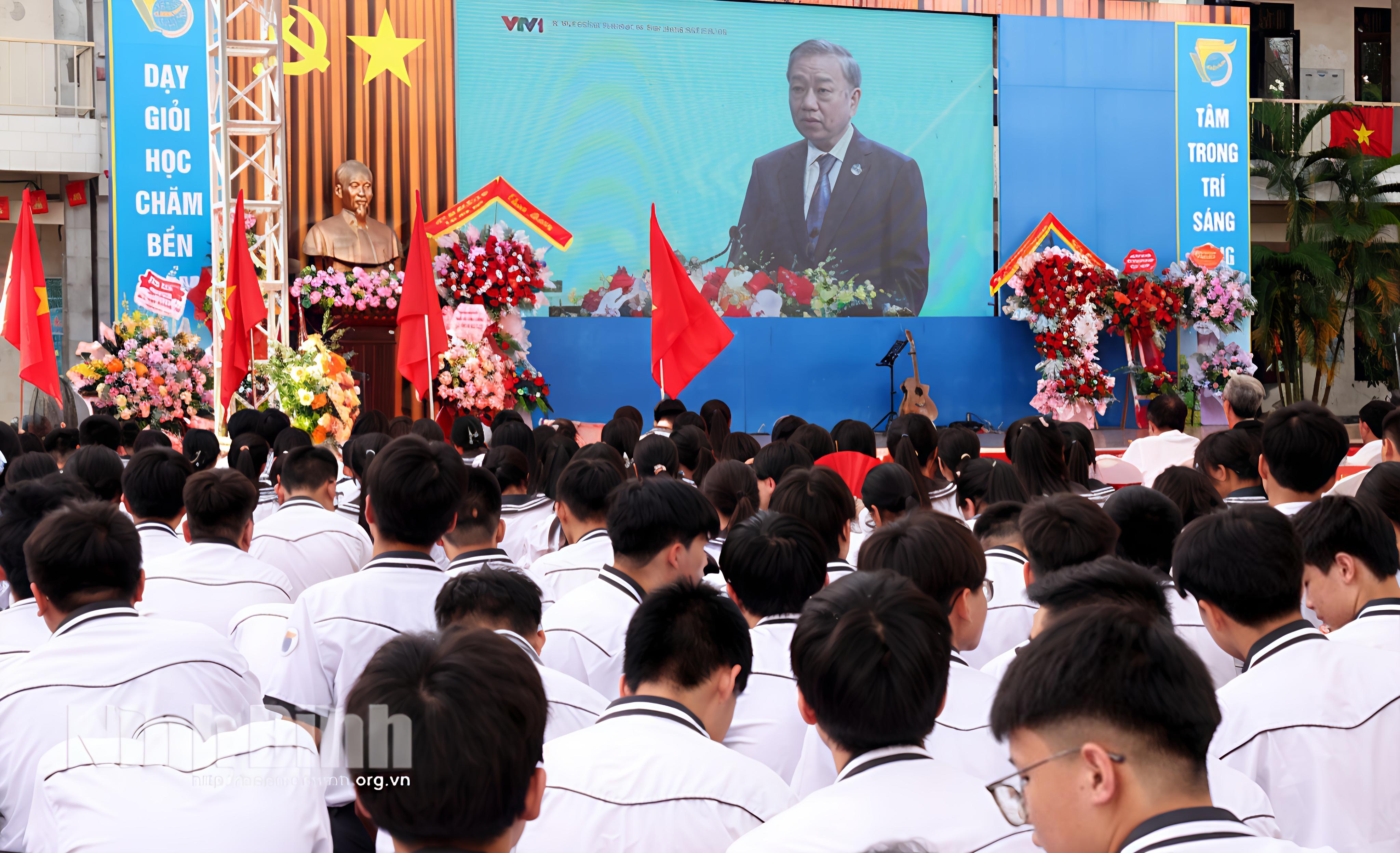 Đồng chí nhấn mạnh: Năm học 2025-2026 là năm học đặc biệt đối với các thầy cô giáo, học sinh khi thực hiện chính quyền địa phương hai cấp, toàn Đảng, toàn dân và toàn xã hội đang kỳ vọng và mong muốn vào sự đột phá, phát triển của ngành GD&ĐT cùng với kỷ nguyên phát triển mới-kỷ nguyên vươn mình của dân tộc. GD&ĐT được xác định là nhiệm vụ quan trọng, đi đầu, luôn cần sự kiên định, quyết tâm, sự đột phá về tư duy, đổi mới của đội ngũ cán bộ quản lý, các thầy cô giáo vì mục tiêu tốt đẹp, lớn lao. Mỗi cán bộ, giáo viên nhà trường cần nhận thức đúng vị trí của xây dựng xã hội học tập, học sinh là trung tâm của mọi hoạt động giáo dục, nhà trường là nền tảng, thầy cô là động lực, quyết định chất lượng giáo dục-đào tạo. Đồng chí Chủ tịch UBND tỉnh mong muốn tập thể cán bộ, giáo viên nhà trường tiếp tục nỗ lực, quyết tâm giữ vững, nhân lên và lan toả truyền thống và niềm tự hào của ngôi trường có bề dày hơn 100 năm xây dựng và trưởng thành trong vùng đồng bằng sông Hồng và cả nước, xứng đáng với sự tin tưởng, mong mỏi của cấp ủy, chính quyền và nhân dân trong tỉnh.