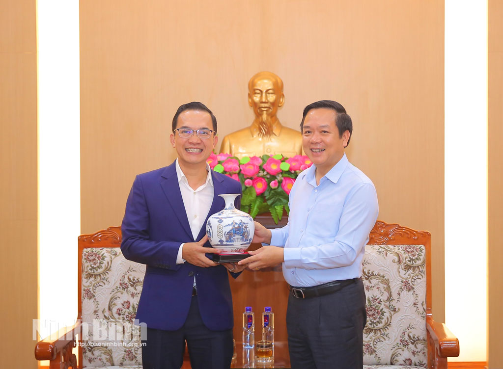 Phát biểu tại buổi làm việc, đồng chí Chủ tịch UBND tỉnh Phạm Quang Ngọc chia sẻ với những khó khăn của doanh nghiệp trong thời gian qua. Đồng chí cũng nhấn mạnh, trong thời gian tới, Ninh Bình sẽ tiếp tục duy trì thực hiện các chính sách trước đây và xây dựng các chính sách mới theo hướng có lợi hơn để đồng hành cùng với sự phát triển của doanh nghiệp. Tỉnh sẽ tiếp tục đầu tư giao thông kết nối, tận dụng các tiềm năng, lợi thế của tỉnh tạo dư địa để thu hút đầu tư. Hỗ trợ các doanh nghiệp về phát triển nguồn nhân lực, nhất là nhân lực chất lượng cao. Đồng chí Chủ tịch UBND tỉnh cũng giao cho các sở, ngành cùng với nhà đầu tư triển khai thu hút các dự án đầu tư tạo ra giá trị sản xuất lớn, trọng tâm là các dự án công nghệ cao, thân thiện với môi trường, góp phần giải quyết việc làm và tăng thu nhập cho người lao động.