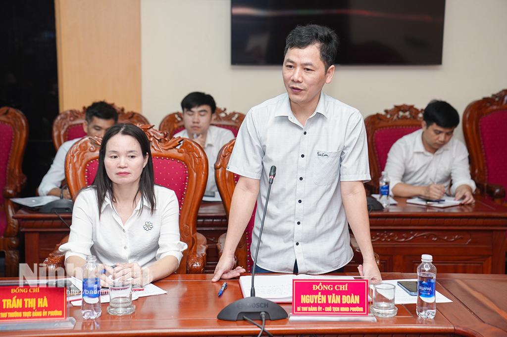 Dự buổi làm việc có đồng chí Trần Anh Dũng, Ủy viên Ban Thường vụ Tỉnh ủy, Phó Chủ tịch UBND tỉnh; lãnh đạo các sở, ban, ngành của tỉnh; các đồng chí Ủy viên Ban Thường vụ Đảng ủy phường Kim Bảng.