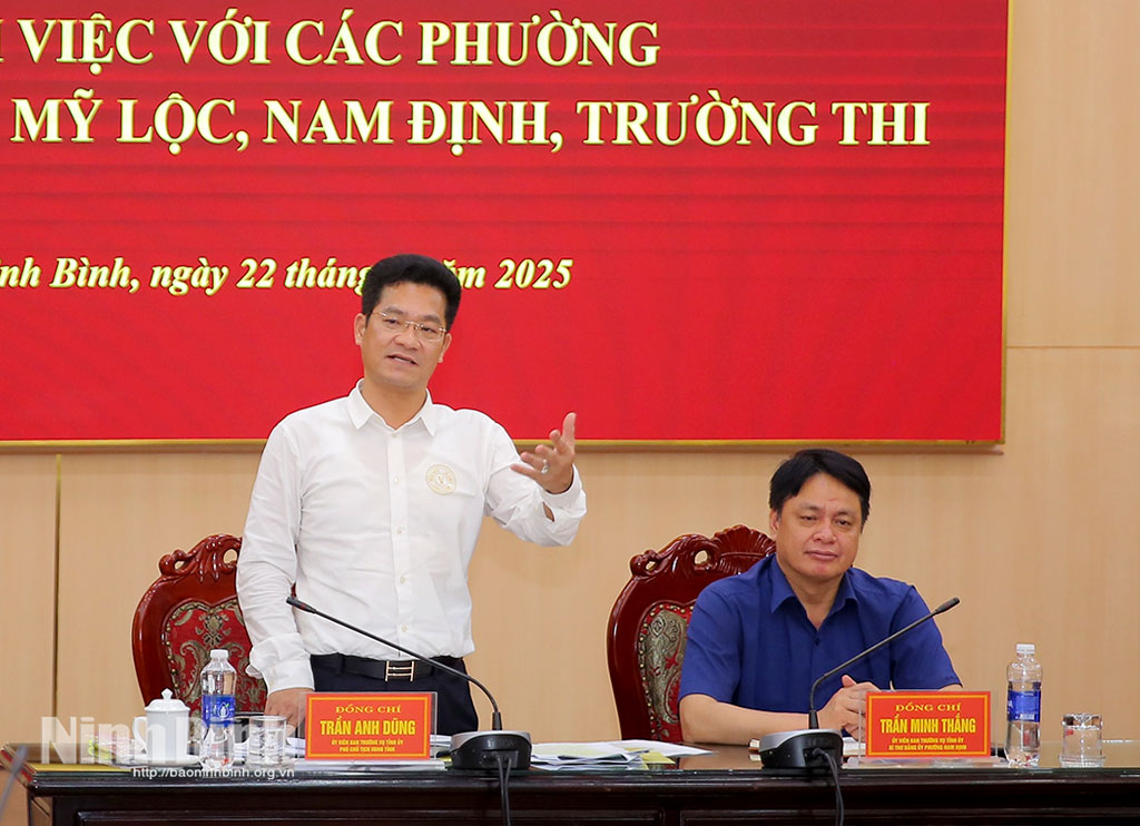 Chiều 22/8, đồng chí Trần Anh Dũng, Ủy viên Ban Thường vụ Tỉnh uỷ, Phó Chủ tịch UBND tỉnh đã có buổi làm việc với các phường: Nam Định, Hồng Quang, Trường Thi và Mỹ Lộc về kết quả thực hiện nhiệm vụ phát triển kinh tế-xã hội 8 tháng, nhiệm vụ trọng tâm những tháng cuối năm 2025.