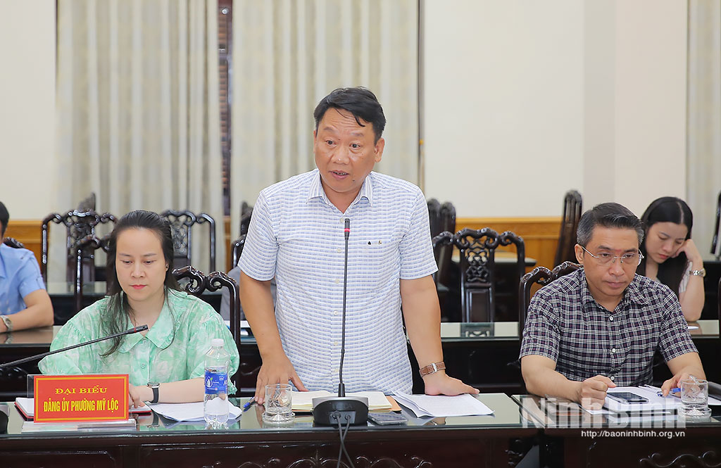 Phường Mỹ Lộc đề nghị UBND tỉnh chỉ đạo Ban Quản lý dự án đầu tư xây dựng Nam Định đẩy nhanh tiến độ xây dựng hạ tầng kỹ thuật, sớm bàn giao quỹ đất để phục vụ việc đấu giá quyền sử dụng đất bảo đảm nguồn thu theo kế hoạch UBND tỉnh giao; sớm ban hành quy trình nội bộ giải quyết thủ tục hành chính trong lĩnh vực đất đai thuộc thẩm quyền giải quyết của Sở Nông nghiệp và Môi trường, UBND cấp xã theo Luật Đất đai năm 2024; xem xét có cơ chế, chính sách áp dụng đối với cán bộ thú y, khuyến nông, khuyến ngư thuộc xã, phường…
